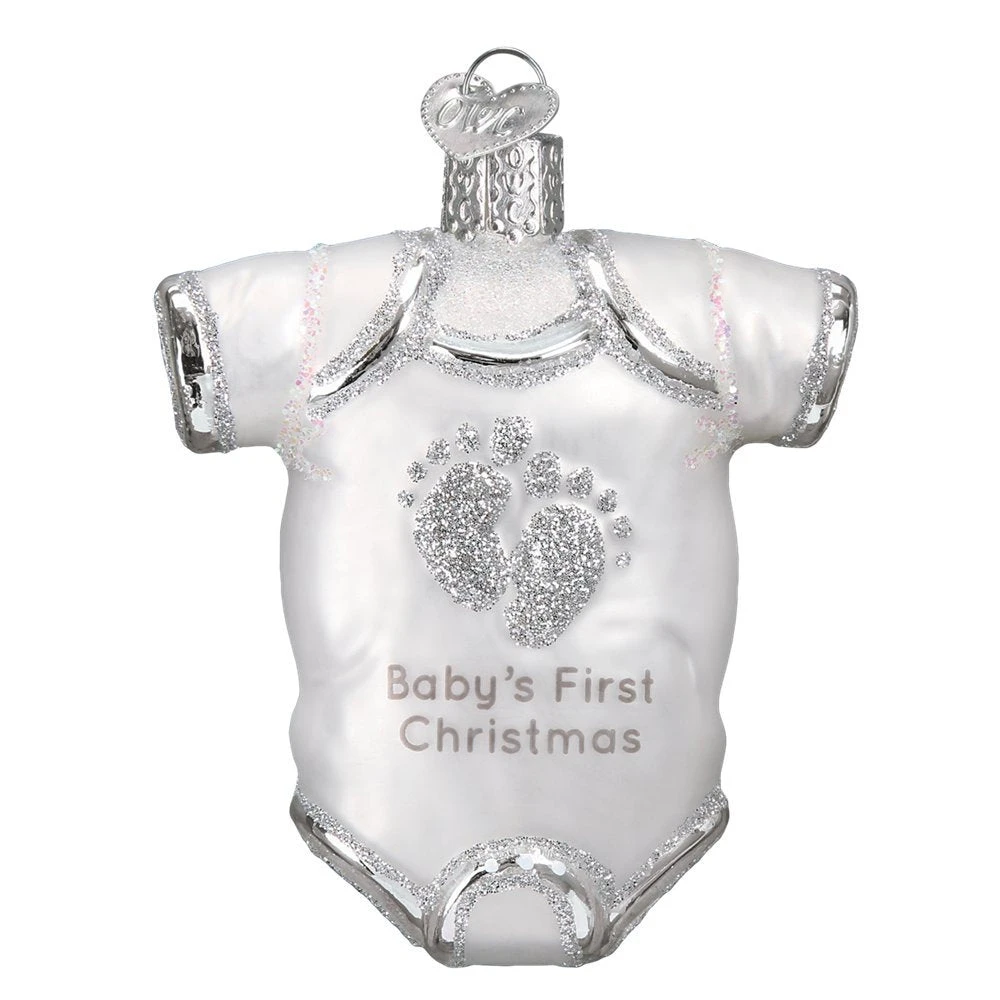 White Baby Onesie Glass Ornament 3 1/4″ Tall