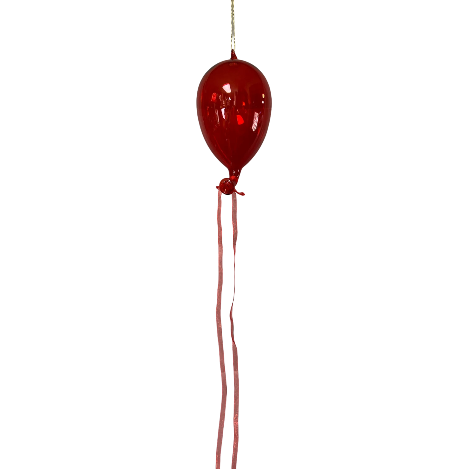 Balloons have long symbolized celebration, joy, and the light-hearted fun of festivities. This ornament captures that cheerful essence, transforming a simple childhood delight into a sophisticated holiday decoration. The elongated tail ribbon creates a sense of movement and can be styled in various ways to enhance its visual appeal.