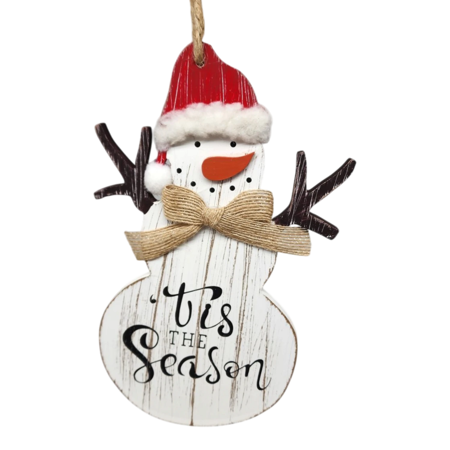 Embrace the magic of winter with our delightful Charming Snowman Ornaments! Each ornament stands at a sweet 8.3 inches and comes in two adorable designs. One greets you with a festive “’Tis the Season,” complete with a jolly red hat and a fluffy white beard, while the other invites winter joy with “Let It Snow,” topped with a classic black top hat. Crafted from sturdy wood and embellished with rustic details, these ornaments are perfect for bringing seasonal cheer to your home.