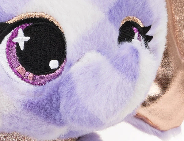 Pack up and go, go, go! Ella L’Phante always has her trunk packed for her next jet-setting adventure around the world in search of good times and new friends! The gorgeous geometric patterns of her fur help her stand out in a crowded airport while her sparkling amethyst eyes stay wide-open so she never misses a thing from the window seat. With her shining rose-gold ears, hooves, and matching glitter collar, Ella’s always ready to get right to adventuring the second her fashionable feet hit the ground.