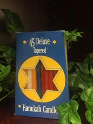 Box of 45 candles, each 3/8″ x 6″ tall (will fit most Menorahs)