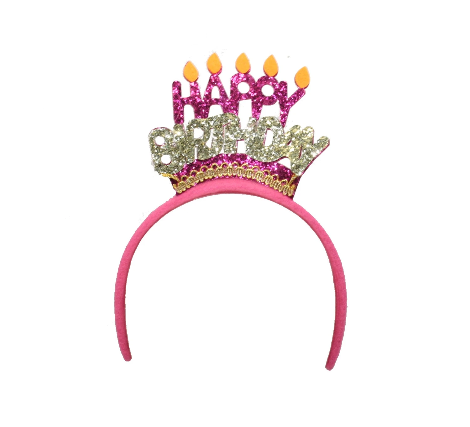 Happy Birthday Headband is a great addition to the Birthday celebration! Pink and gold lettering spells out Happy Birthday with candles on top.