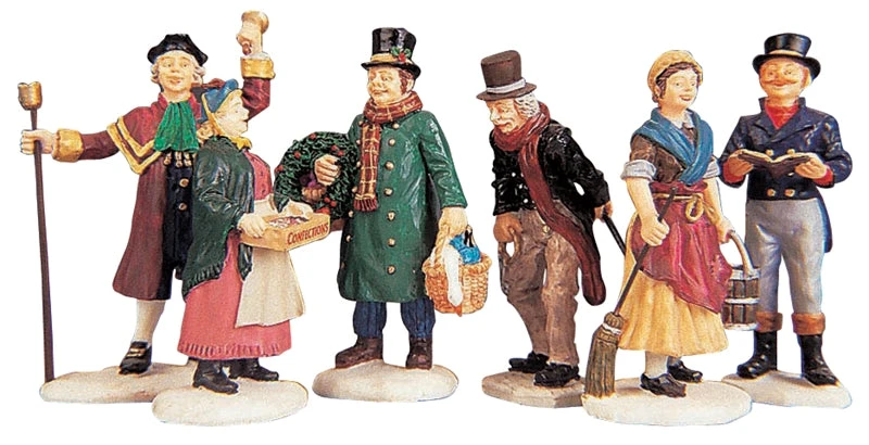 This Lemax collection figurine set (of 6) depicts a group of 6 townsfolk enjoying the night, enjoying the season and expressing joy!