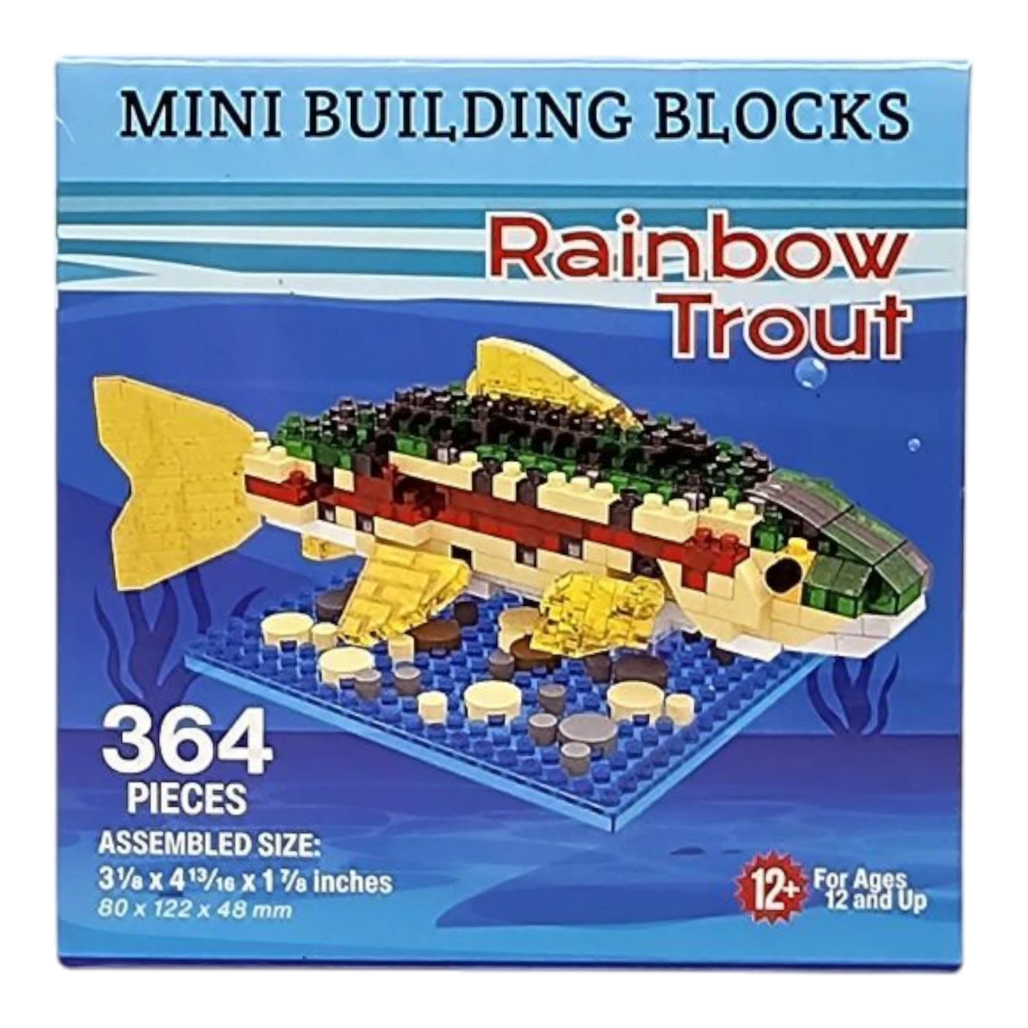 Dive into the colorful underwater world with the Mini Building Blocks Rainbow Trout set! This vibrant kit includes 364 pieces, perfect for builders aged 12 and up. The completed model measures over 4 inches long and 3 inches tall, capturing the striking beauty and distinctive markings of the rainbow trout in intricate detail. This lifelike figure, set on a realistic aquatic base, brings the serene atmosphere of freshwater streams into your home.
