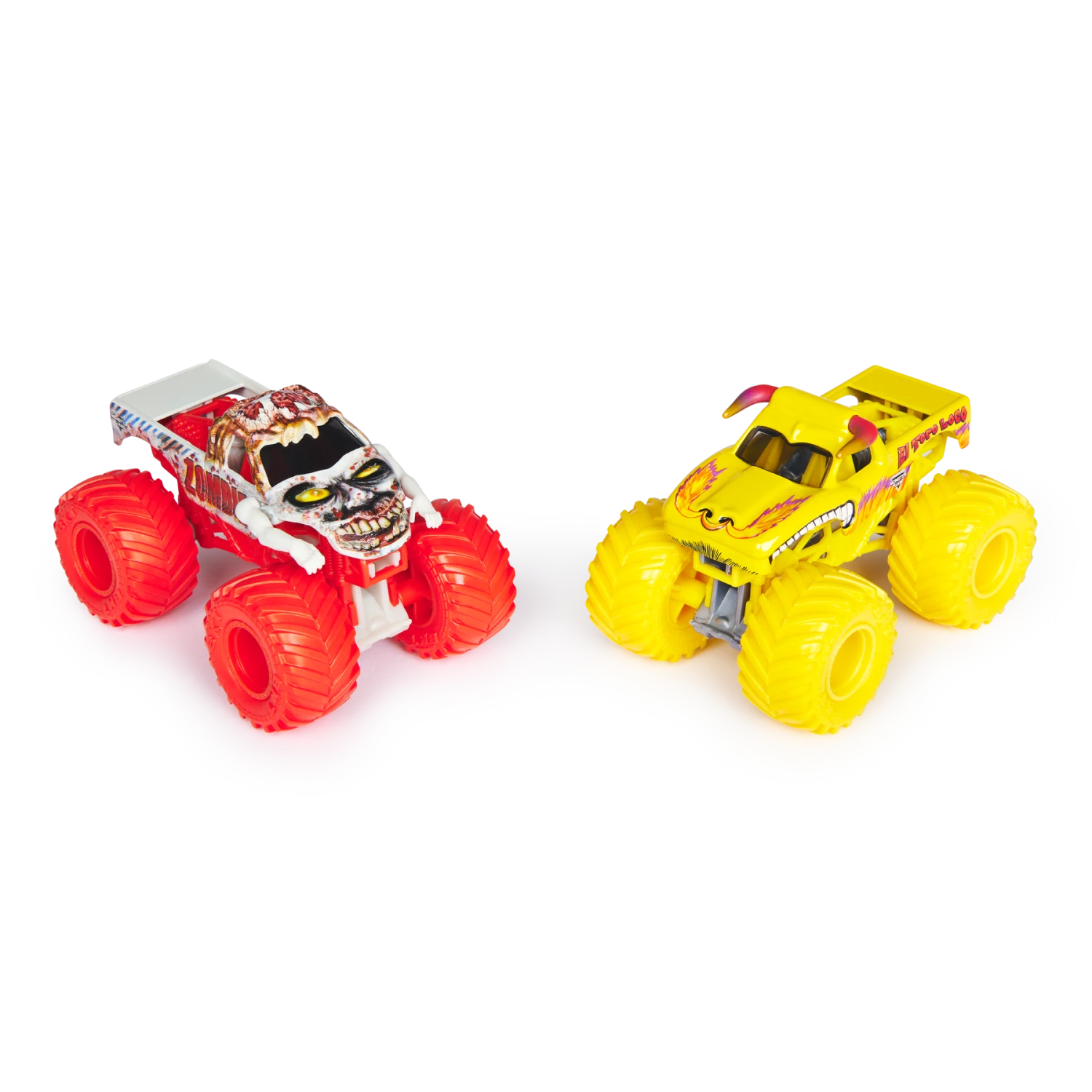 Interestingly, El Toro Loco and Zombie are two of the most popular trucks in the Monster Jam lineup, each known for their unique designs and crowd-pleasing performances. Both trucks have a massive fan following and often engage in some of the most anticipated clashes on the Monster Jam circuit. Now, you can bring that electrifying experience home with this dynamic duo pack. Let the battles begin!