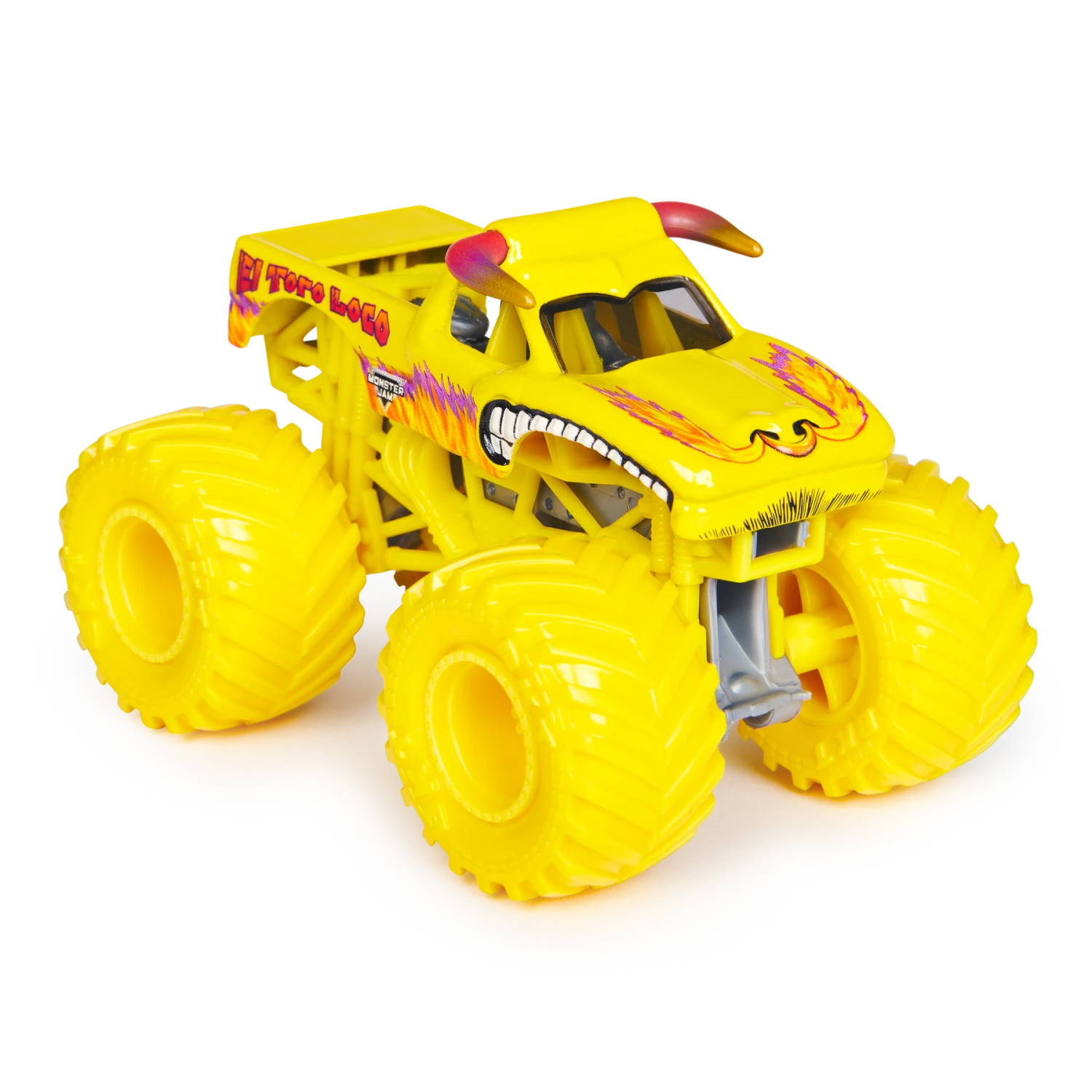 Get ready for a fierce face-off with the Monster Jam 1:64 scale die-cast 2-Pack featuring Zombie vs. El Toro Loco! These miniatures are all about revving up the excitement, bringing the exhilarating thrill of Monster Jam events straight into your living room. The Zombie truck is meticulously detailed with its gory graphics and signature arms, while El Toro Loco roars in with its iconic bullhorns and fiery color scheme. Each truck is crafted to perfection, capturing the raw power and audacious styles that make Monster Jam so thrilling.