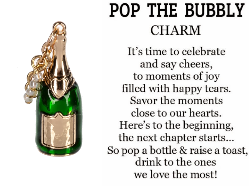 “It’s time to celebrate and say cheers, to moments of joy filled with happy tears. Savor the moments close to our hearts. Here’s to the beginning, the next chapter starts…So pop a bottle and raise a toast, drink to the ones we love the most! “