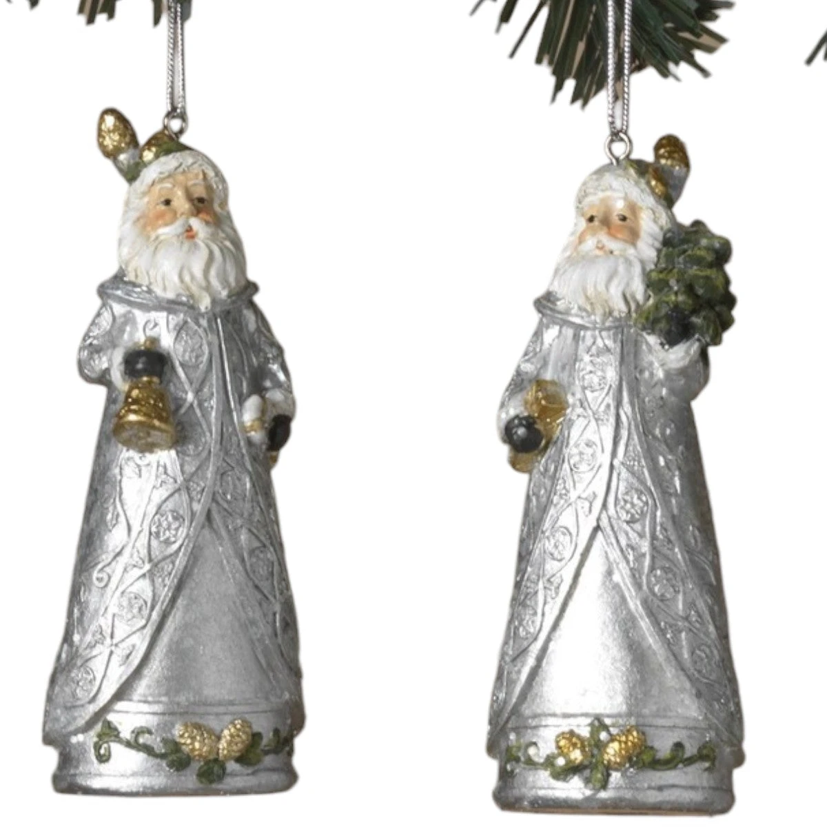 Celebrate the spirit of the season with our enchanting Holiday Santa Ornaments, sold separately! The Jolly Santa with Bell Ornament stands at 4 inches tall and features a whimsical Santa dressed in elegant silver attire, holding a bell that jingles with holiday cheer. This charming ornament captures the classic essence of Christmas, making it a perfect addition to your tree or holiday decor.