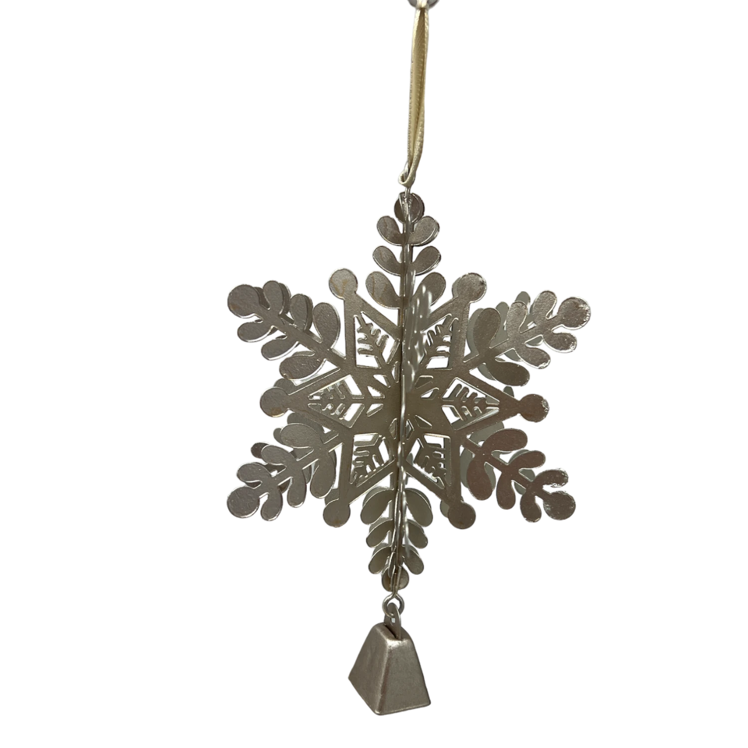 Metal Die Cut Snowflake With Rounded Branch Form and Dangle Bell Ornament