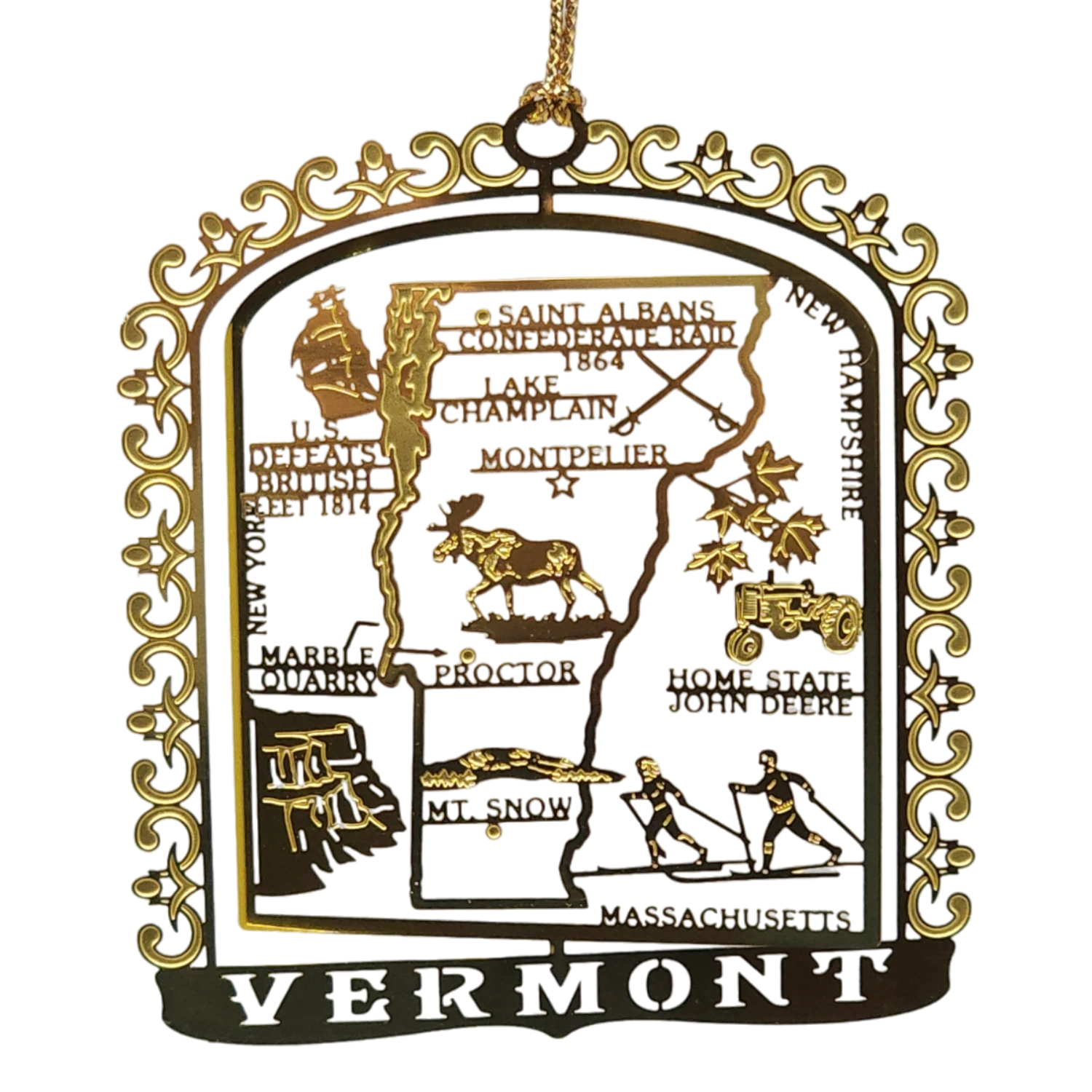 Solid Brass Ornament – Vermont Map And Landmarks
