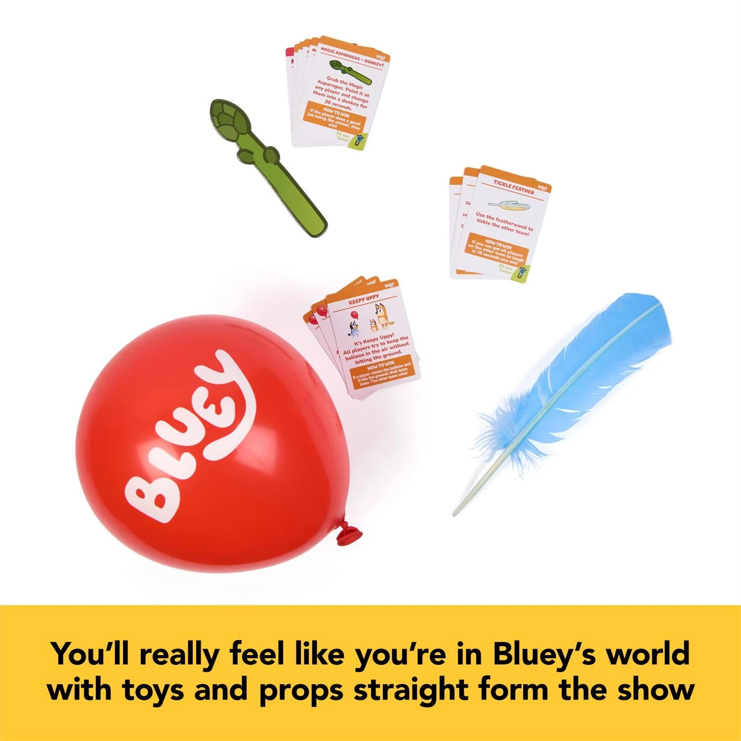 - WACKY CHALLENGES: Parents vs kids teams compete in 70+ fun Bluey challenges, like Keepy Uppy, with props straight from the show included. Challenges can require one player from each team or everyone to compete. The winner moves ahead!