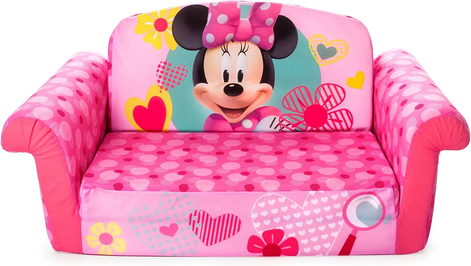 Transform your little one’s space into a magical haven with the Marshmallow Furniture Toddler 2-in-1 Flip Open Foam Compressed Sofa featuring Minnie Mouse. This delightful piece, bursting with pink shades and fun patterns, is perfect for lounging or nap time. It effortlessly converts from a cozy sofa to a comfortable lounger, making it versatile and practical for any playroom.