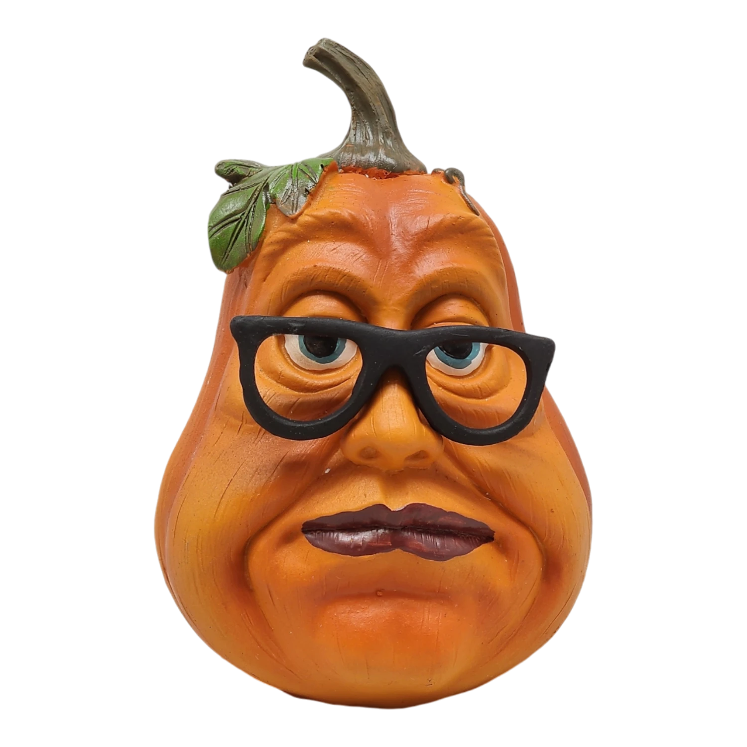 Add a playful touch to your seasonal decor with these whimsical Character Pumpkin Figurines. Sold individually, each pumpkin stands between 5 to 7 inches tall and features amusing facial expressions, brought to life with quirky details like glasses and unique, expressive faces. These charming pumpkins are perfect for giving your home a festive and fun personality, whether you’re decorating for Halloween, Thanksgiving, or just embracing the autumn season.