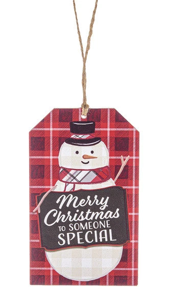 Wooden ornament in the shape of a Gift tag. Hang on a wreath or tree as a decoration, and attach to a gift as a super special Gift Tag.
